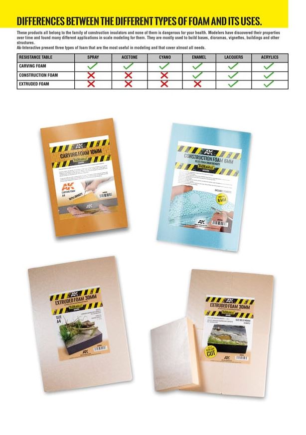 - Este poliestireno está indicado para la construcción y talla de elementos dentro de una viñeta o un diorama, una pared, un edificio, una ruina, una valla, un empedrado etc… es Styrofoam LBH-X de Foam-Tech.
