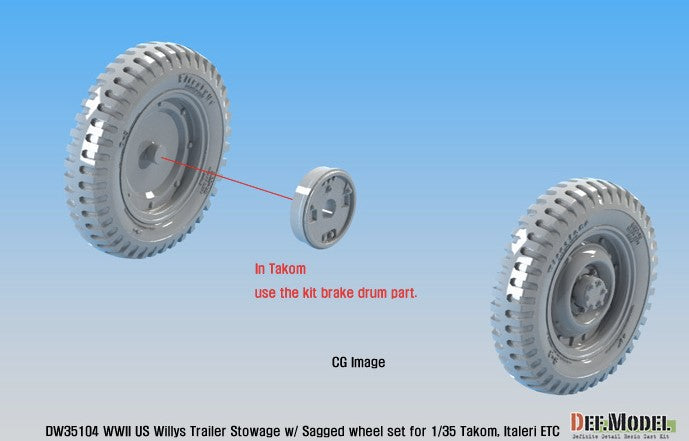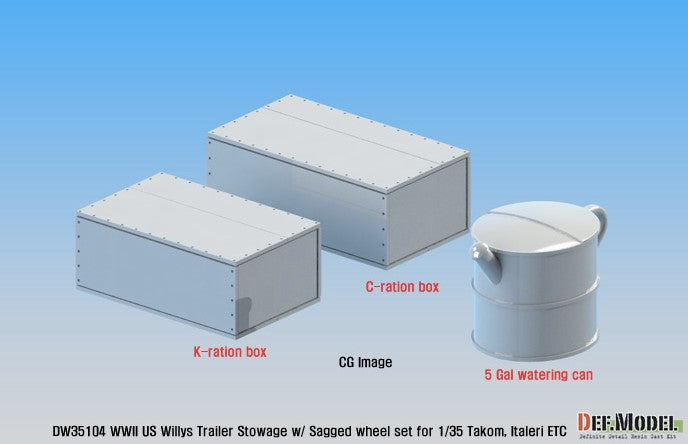 - DEF MODEL (1/35) WWII U.S. Willys Trailer Stowage w/ Sagged wheel set (for Takom, Bronco, Italeri)