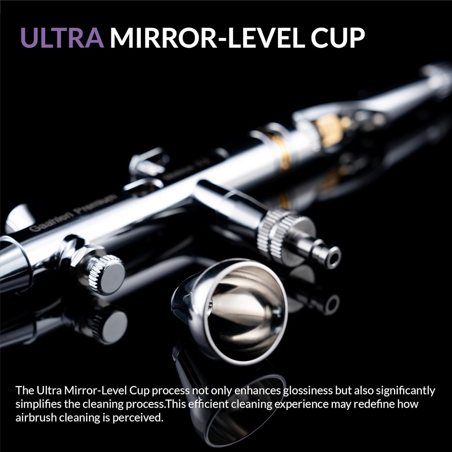 - Copa de nivel de espejo ultra excepcional: utilizando tecnología de pulido avanzada, la copa interior va más allá del acabado de espejo estándar de Gaahleri para lograr superficies aún más lisas. Este diseño minimiza la acumulación de pintura, simplifica la limpieza y maximiza la eficiencia.