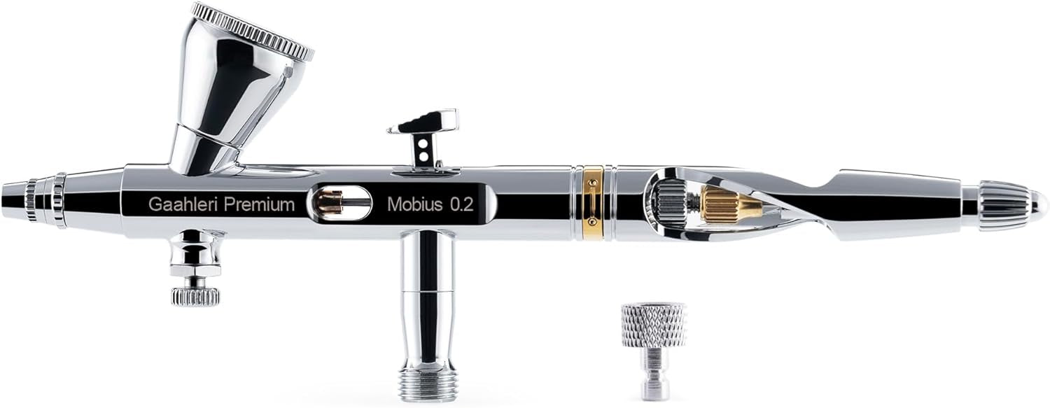 - Botón de control de aire de precisión de 0,2mm. Por primera vez en Gaahleri, la versión de 0,2mm está equipada con una perilla de control de aire con roscas de control más largas y finas, proporcionando una experiencia de afinación perfecta mientras garantiza un control preciso del aerógrafo.
