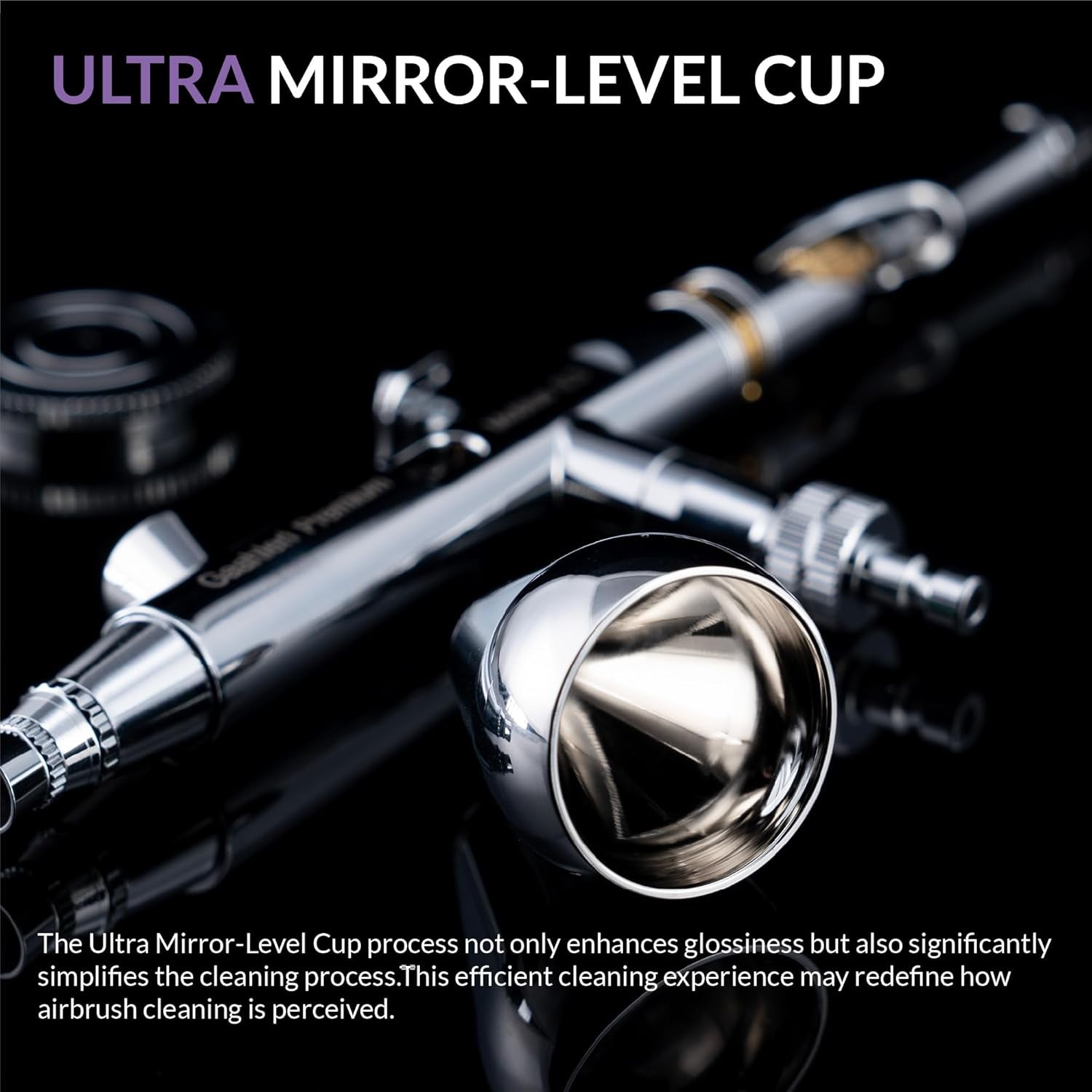- Copa de nivel de espejo ultra excepcional: utilizando tecnología de pulido avanzada, la copa interior va más allá del acabado de espejo estándar de Gaahleri para lograr superficies aún más lisas. Este diseño minimiza la acumulación de pintura, simplifica la limpieza y maximiza la eficiencia.