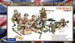 - Conjunto de figuras de soldados británicos con ametralladora pesada en el noroeste europeo de finales de la Segunda Guerra Mundial, en escala 1/35.