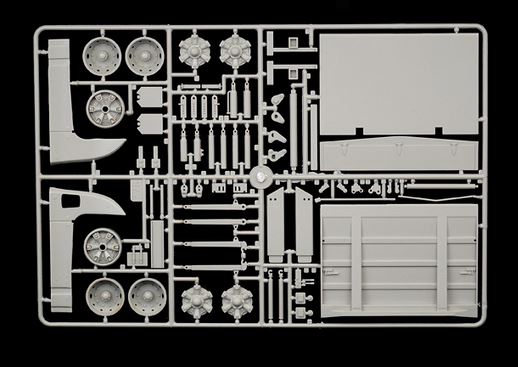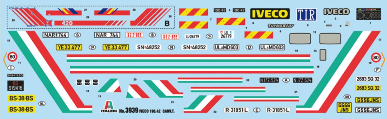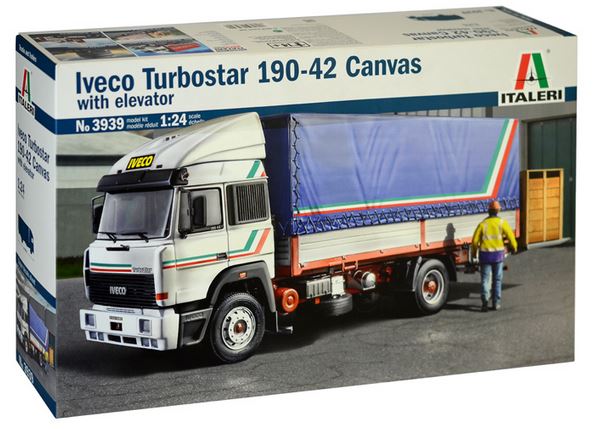 - Maqueta sin montar ni pintar de camión IVECO Turbostar 190-42 con elevador, en escala 1/24.
