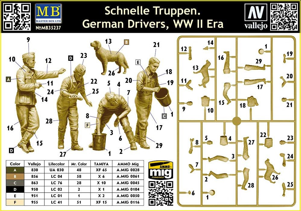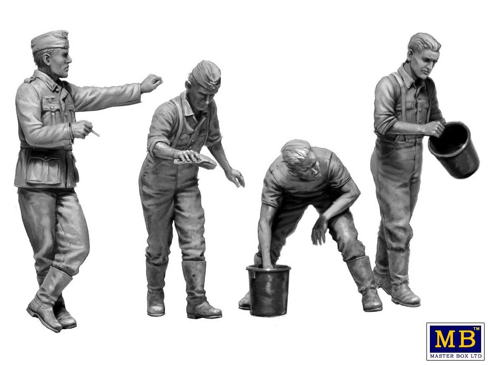 - Figura de conductores alemanes limpiando sus vehículos en actitud distendida, en escala 1/35.