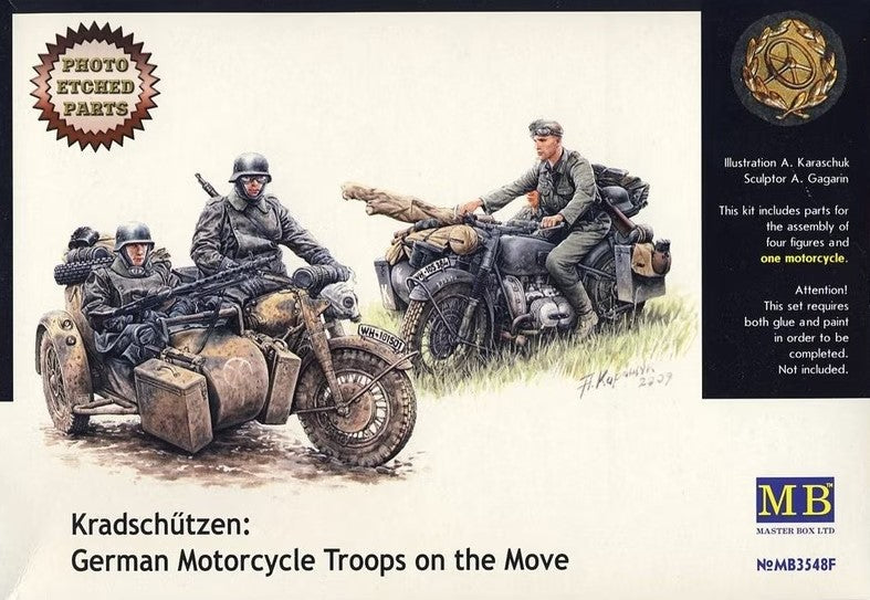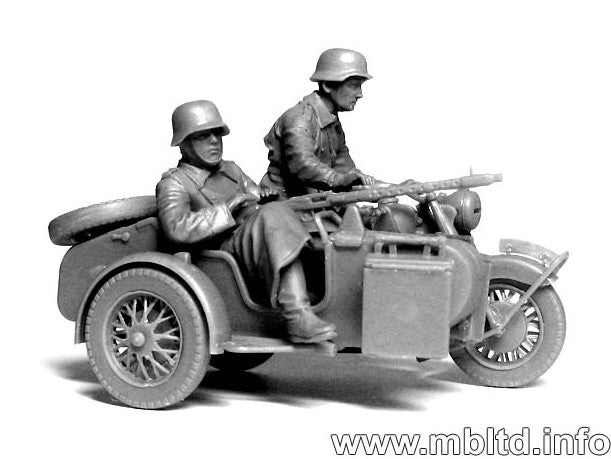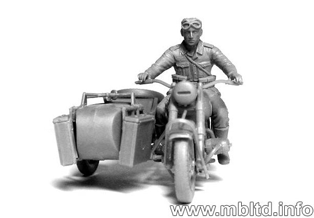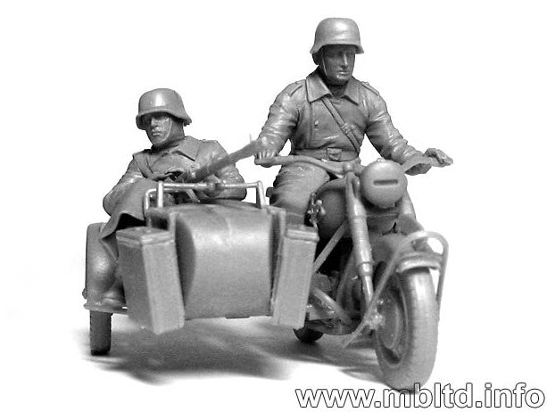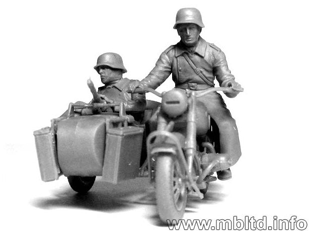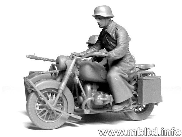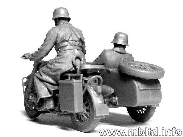 - Modelo de moto alemana BMW R-75 con soldados alemanes, en escala 1/35.