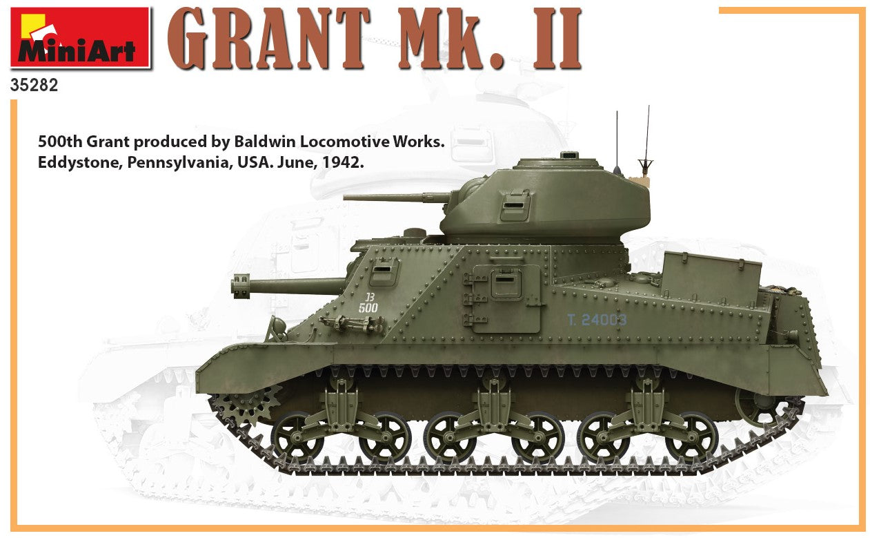 - Modelo del carro de combate de origen norteamericano adaptado por los británicos Grant Mk.II en escala 1/35.