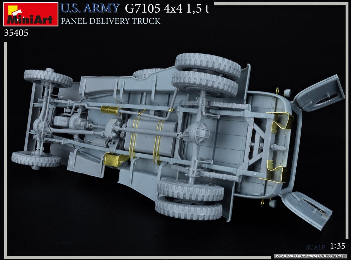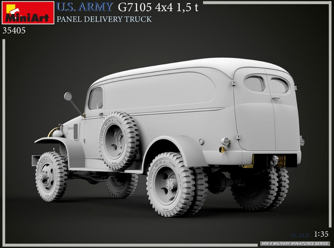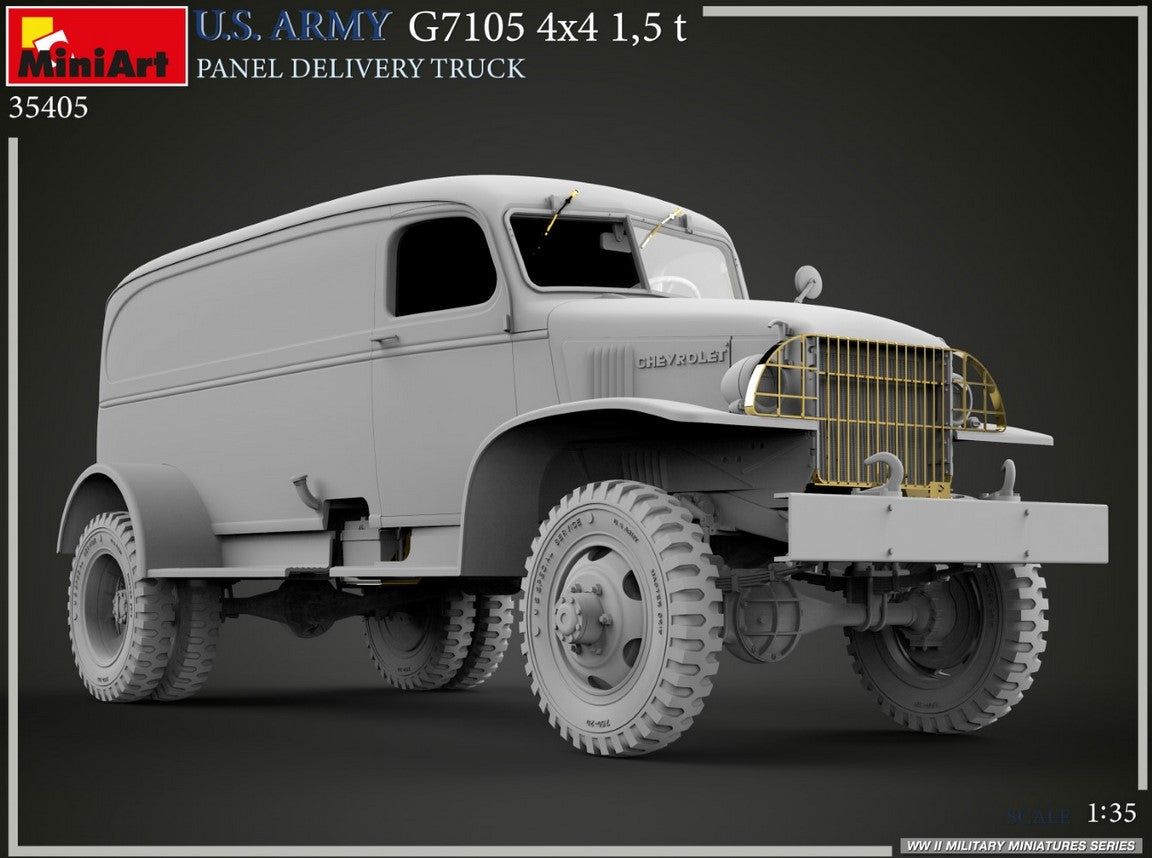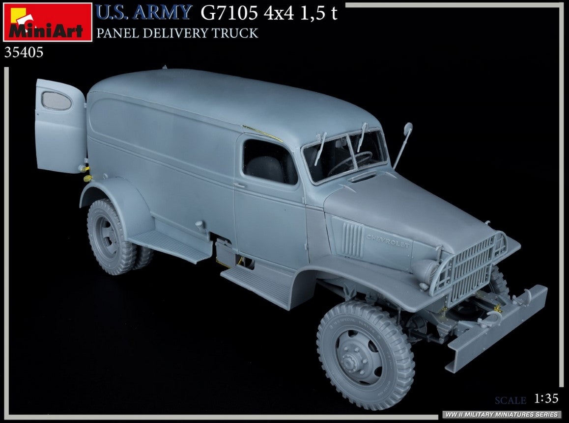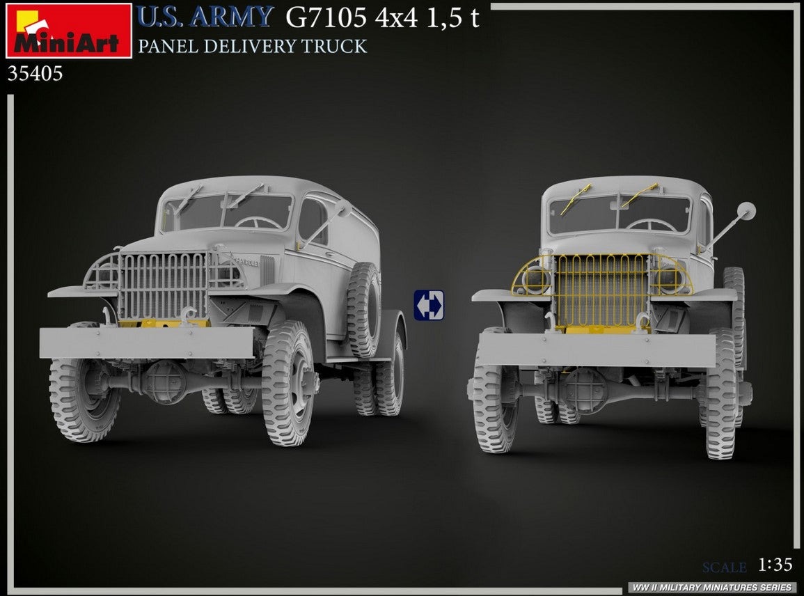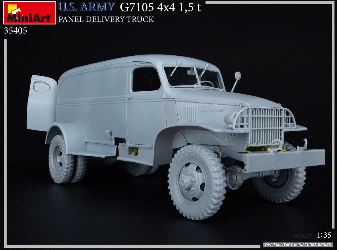 - Modelo de vehículo de transporte militar 4x4 estadounidense G7105 de 1,5 toneladas, en escala 1/35.