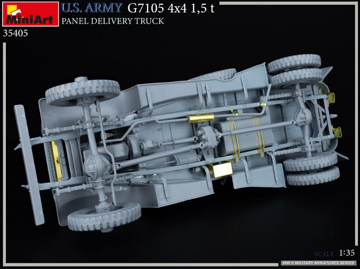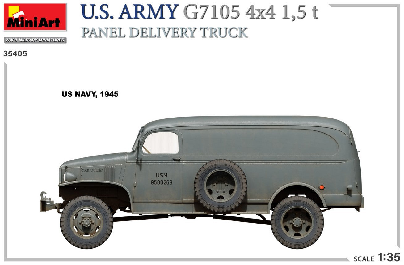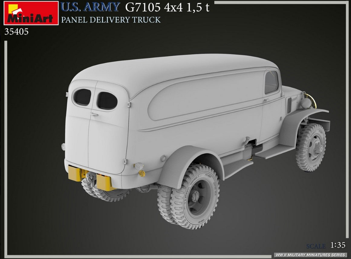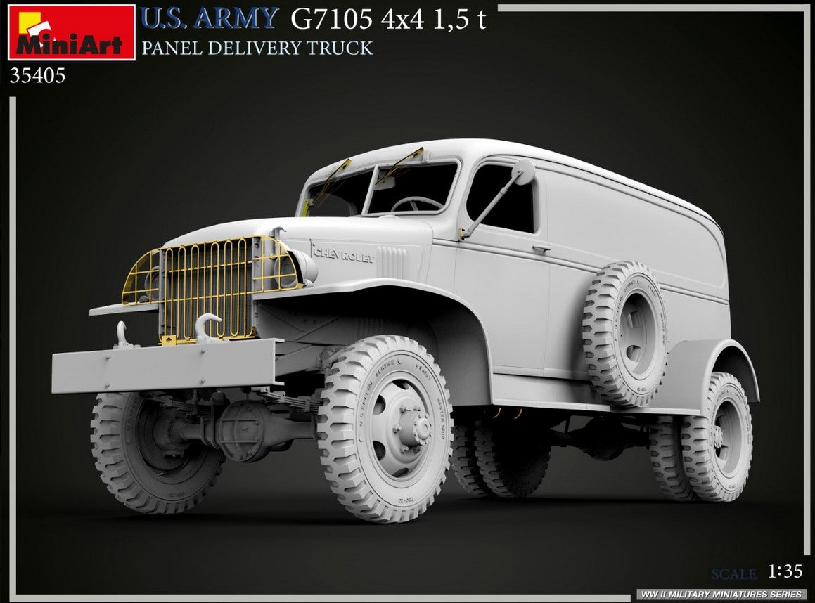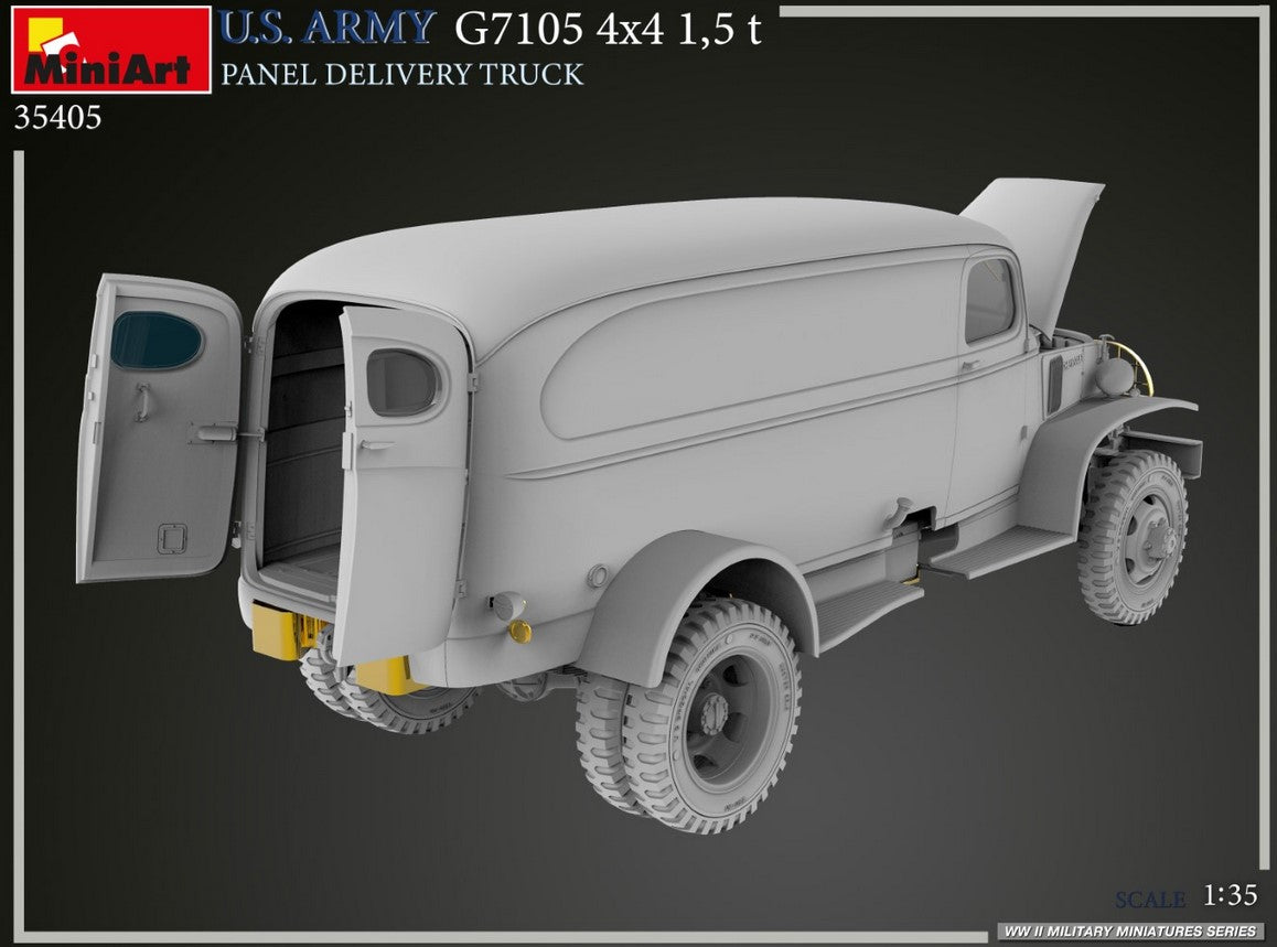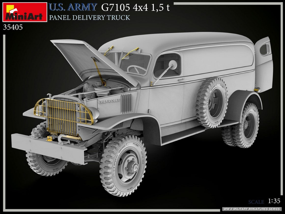 - Modelo de vehículo de transporte militar 4x4 estadounidense G7105 de 1,5 toneladas, en escala 1/35.