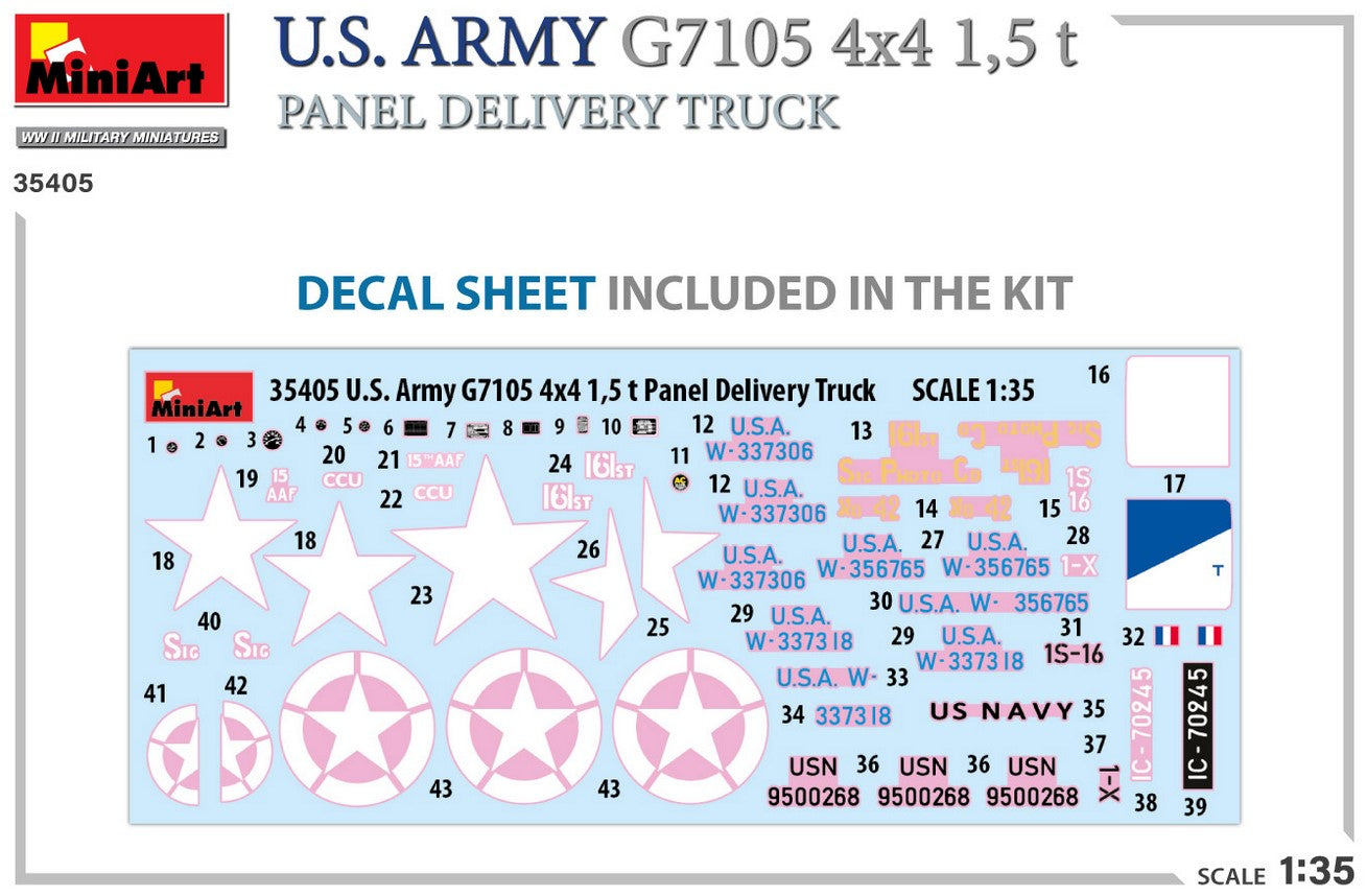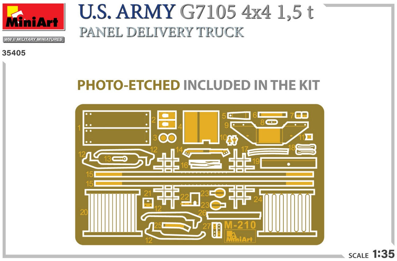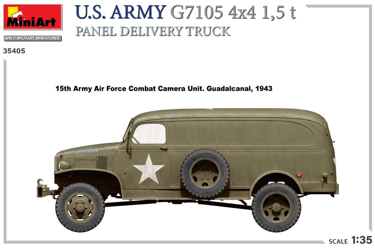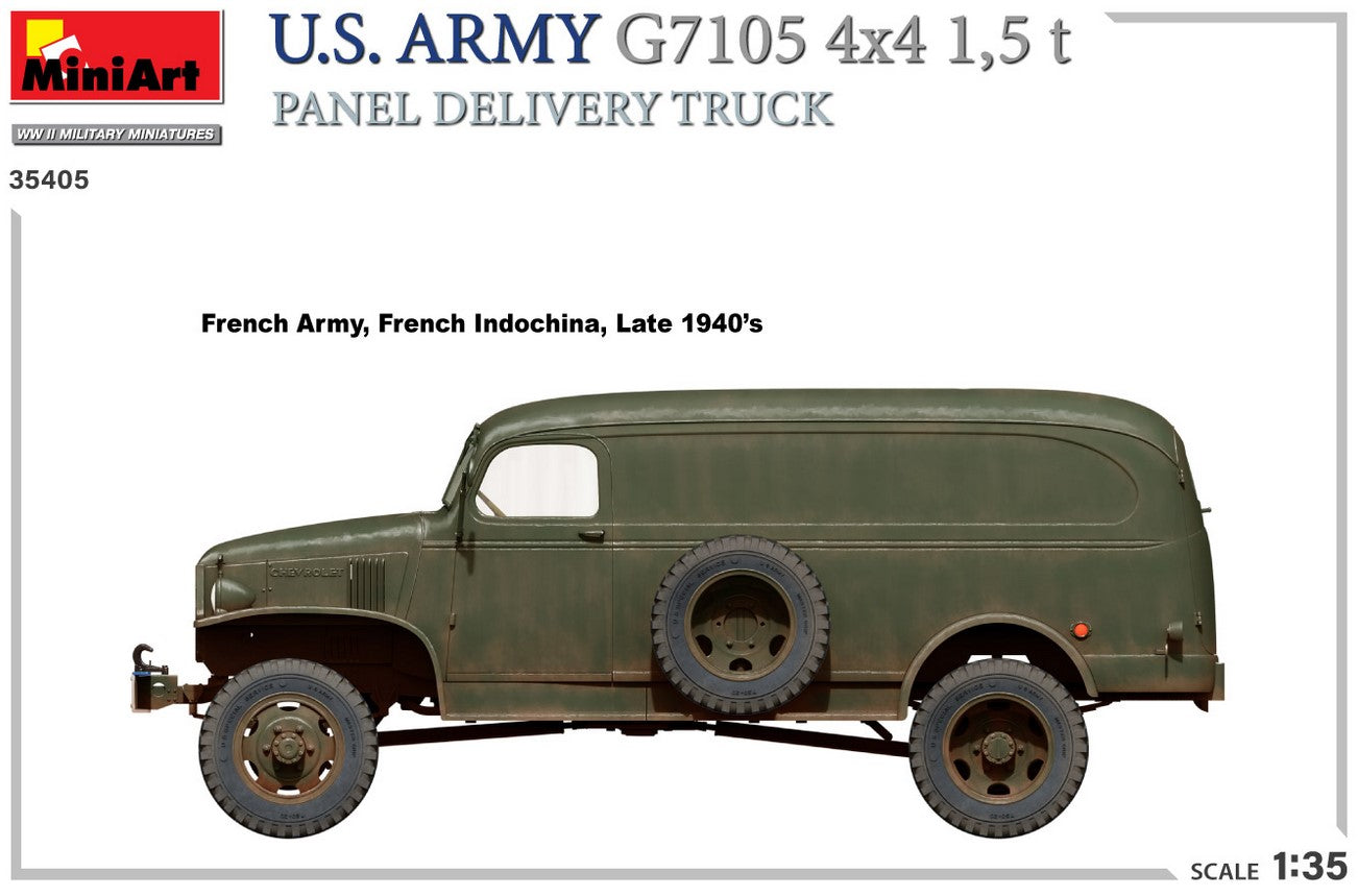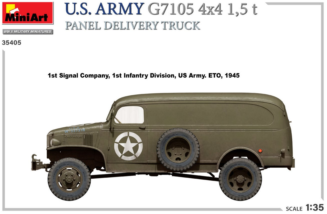 - Modelo de vehículo de transporte militar 4x4 estadounidense G7105 de 1,5 toneladas, en escala 1/35.