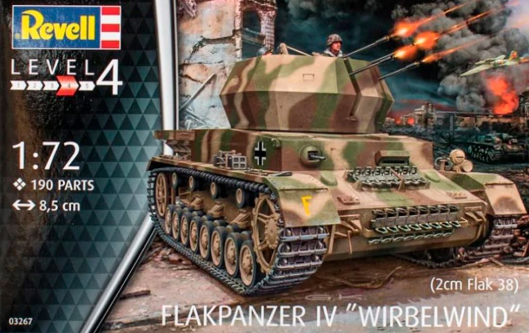 - Modelo de vehículo acorazado antiaéro alemán Wirbelwind, basado en el chásis del Panzer IV, en escala 1/72.