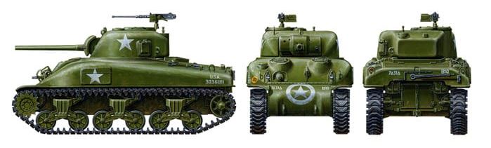 - Modelo carro estadounidense Sherman en su primera versión M4A1, en escala 1/48.